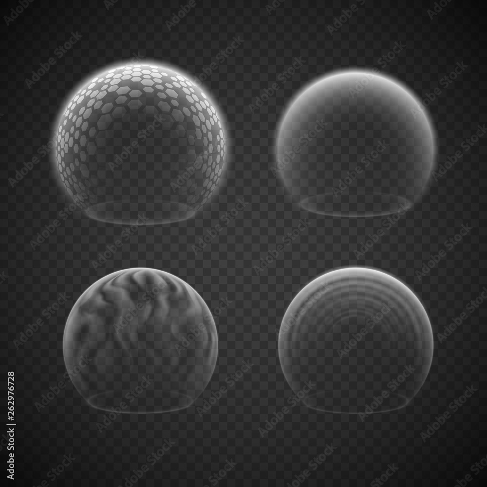 Obraz na plátně Force field set isolated on transparency grid, various energy or defense shields
