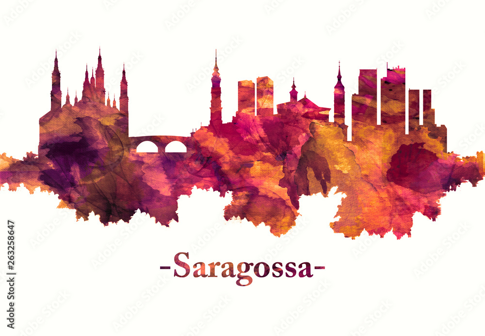 Obraz na plátně Saragossa Spain skyline in red