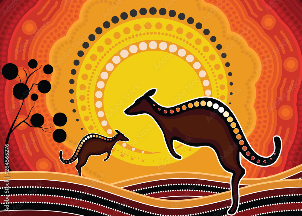 Obraz na plátně Aboriginal art vector painting with kangaroo