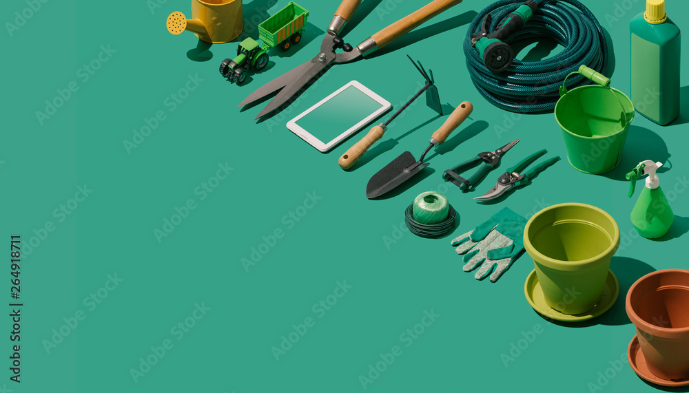 Obraz na plátně Gardening and horticulture tools collection
