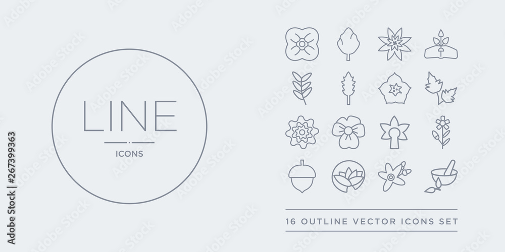 Obraz na plátně 16 line vector icons set such as natural medical pills, neroli, nymphea, oak, oleander contains orchid, pansy, peony, peppermint