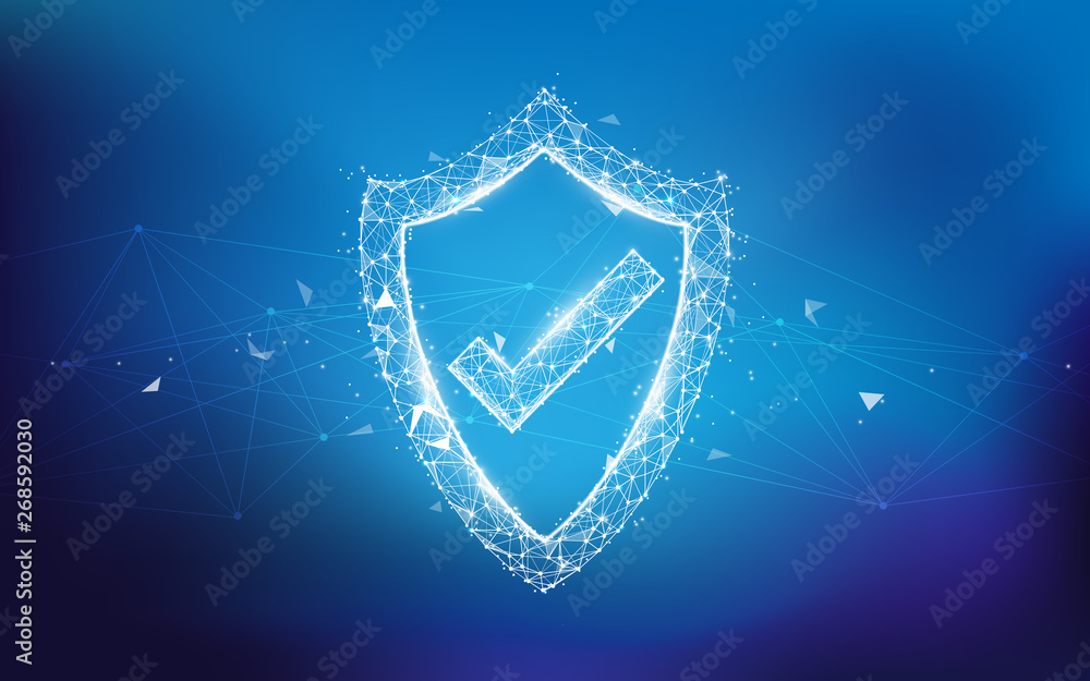 Obraz na plátně Protection shield and network protection concept from lines, triangles and particle style design