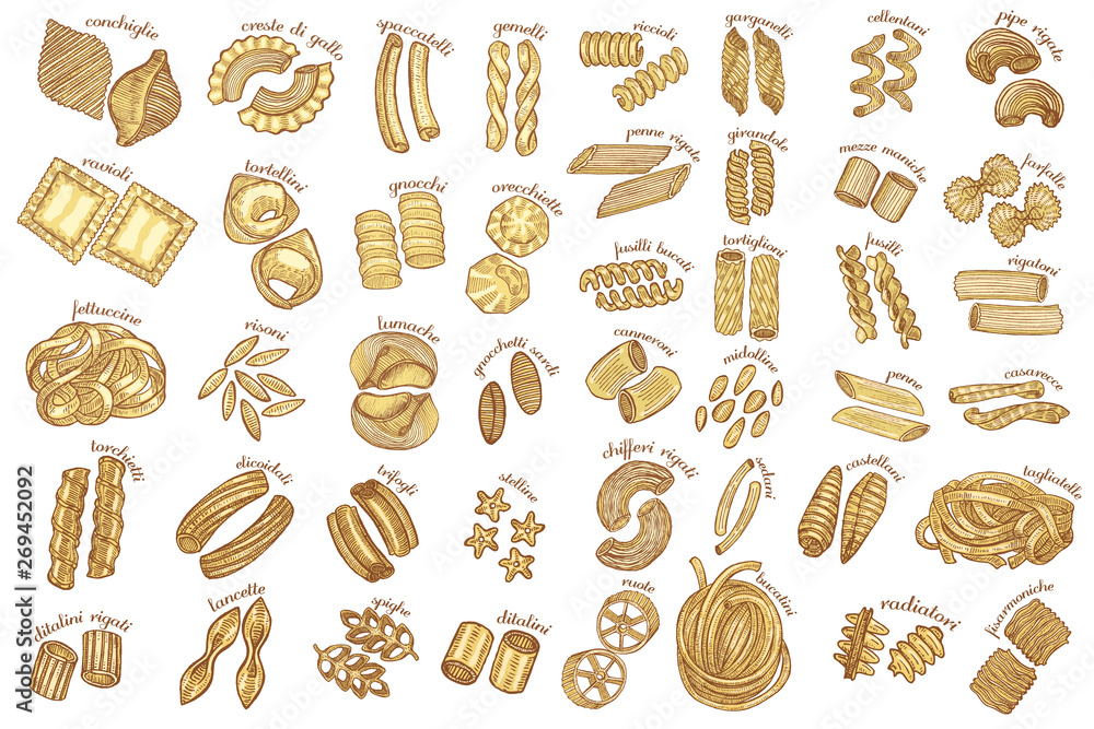 Obraz na plátně Italian Pasta Collection in Hand-Drawn Style