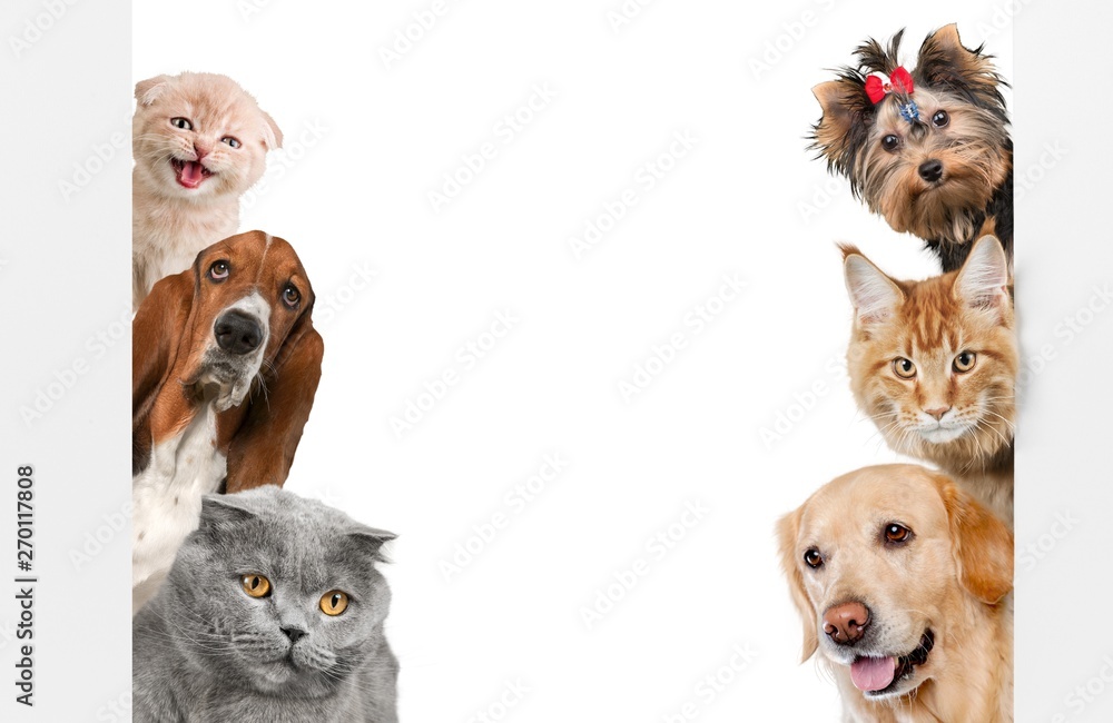 Obraz na plátně Various cats and dogs as frame isolated on white