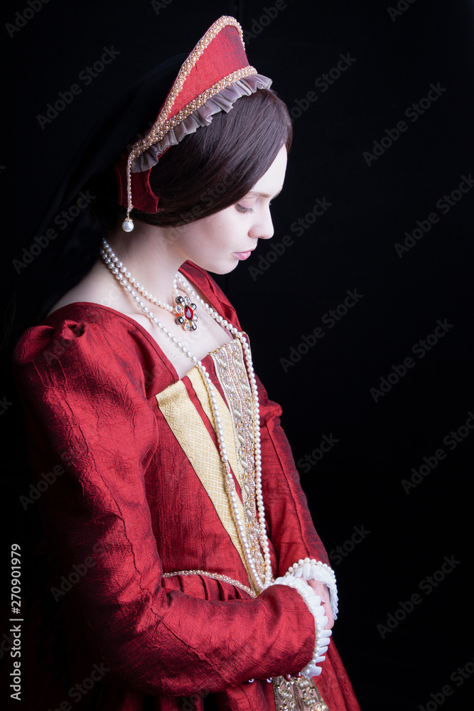 Obraz na plátně Dark-haired Tudor woman in red dress