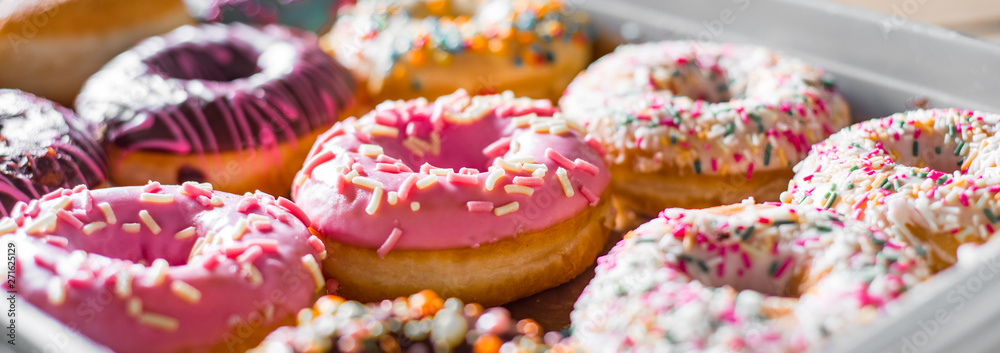 Obraz na plátně Assorted sweet donuts in a paper box.
