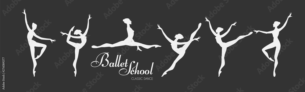 Obraz na plátně Ballerina Silhouettes Set. Dancing Girls. Classic Dance.