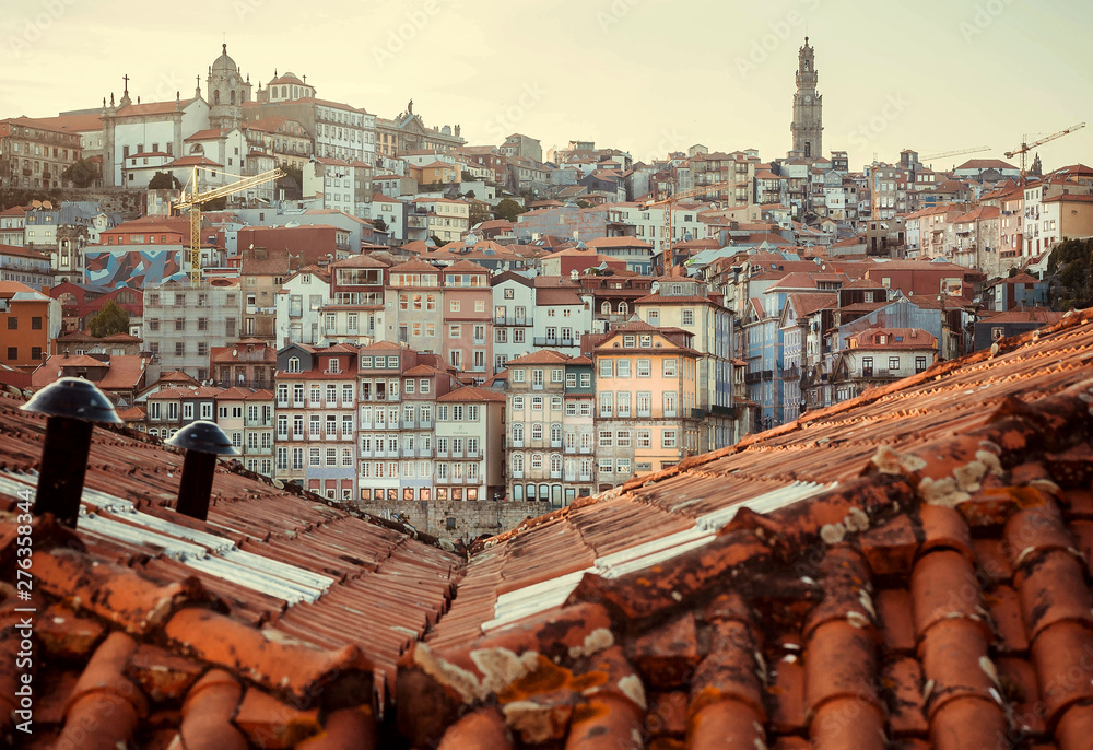 Obraz na plátně Red tile roofs over historical city center of Porto city, Portugal