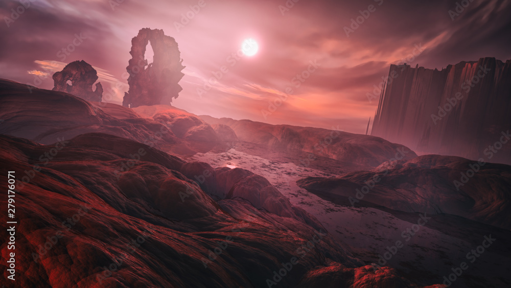 Obraz na plátně dark and scary hell environment with spooky landscape and fiery atmosphere