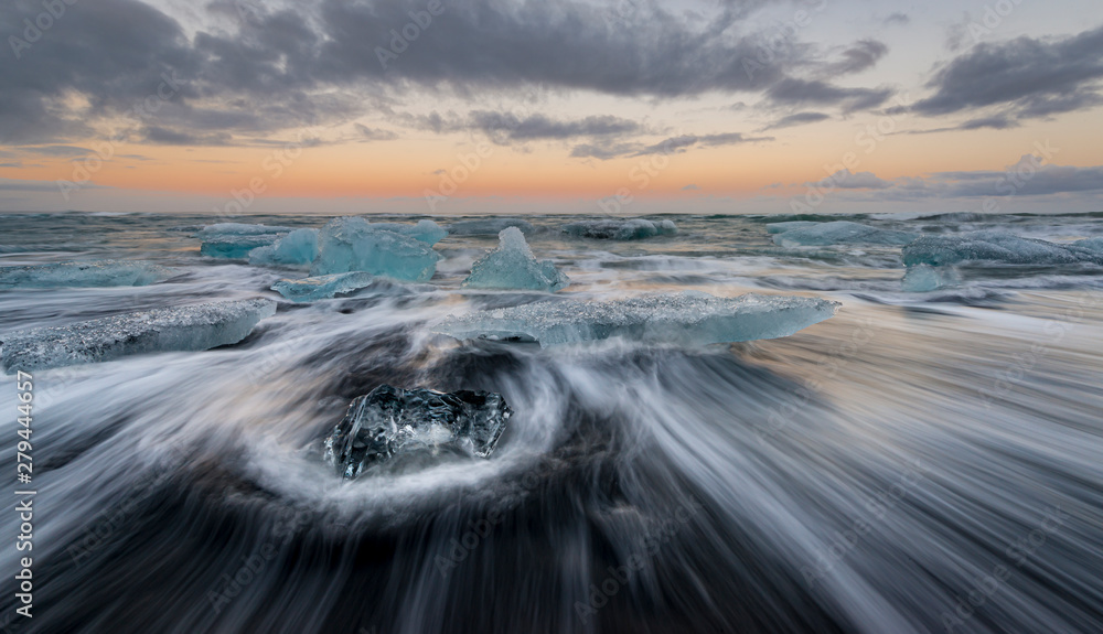Obraz na plátně Wave motion, diamond beach, south Iceland