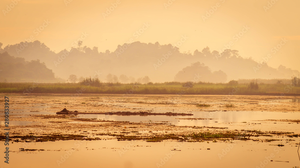 Obraz na plátně beautiful landscape of swamp and forest surround
