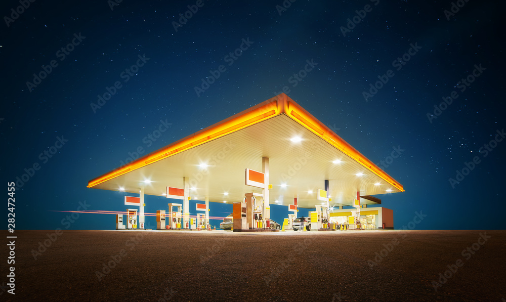 Obraz na plátně Unbranded Gas station with retail convenience store at night time