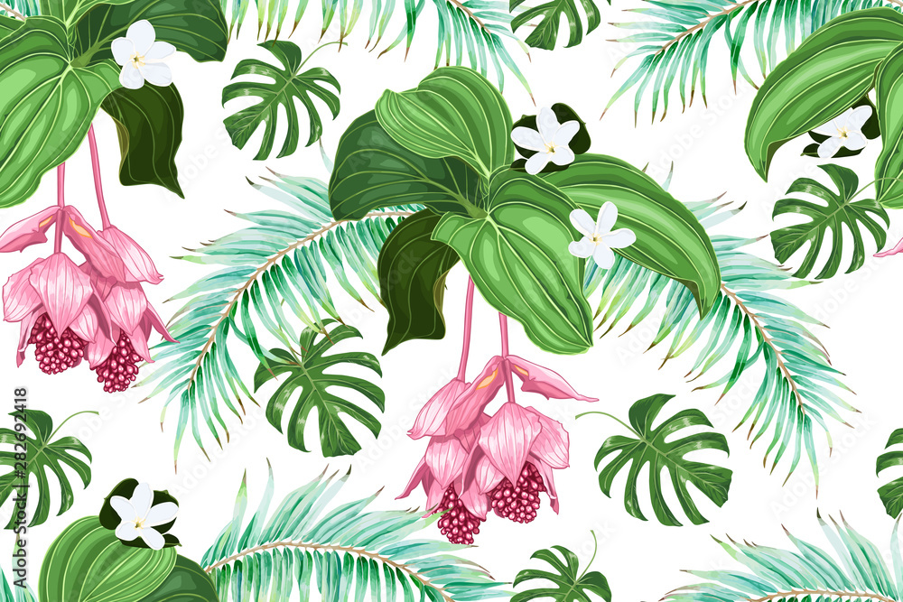 Obraz na plátně Tropical flowers and leaves