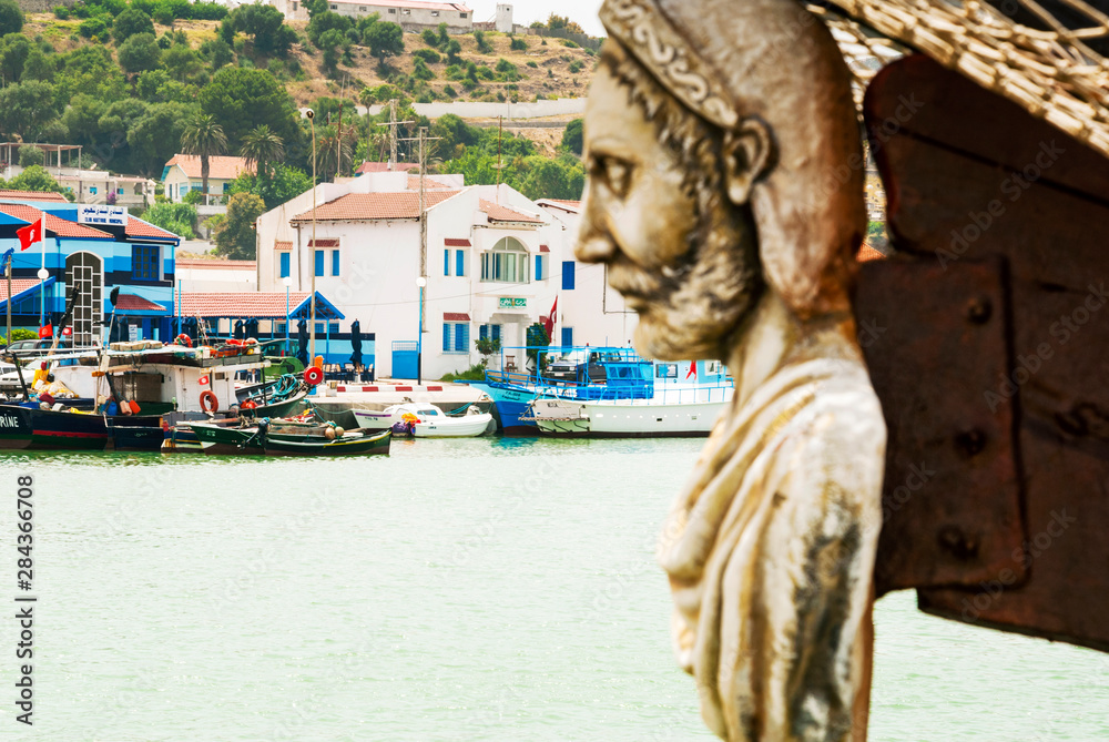 Obraz na plátně Tabarka, The port, figurehead of ship, Tunisia, North Africa