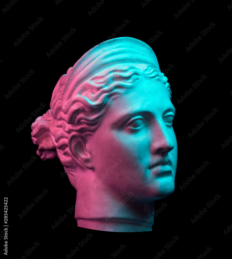 Obraz na plátně Gypsum copy of ancient statue Diana head isolated on black background