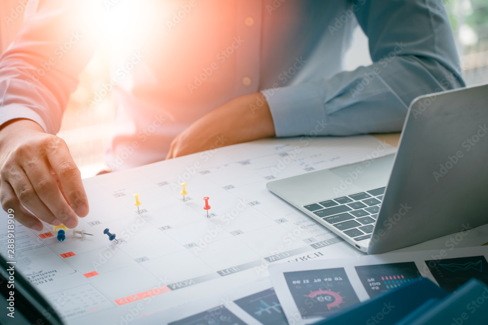 Obraz na plátně Business Man with laptop, Calendar in office, Business management event