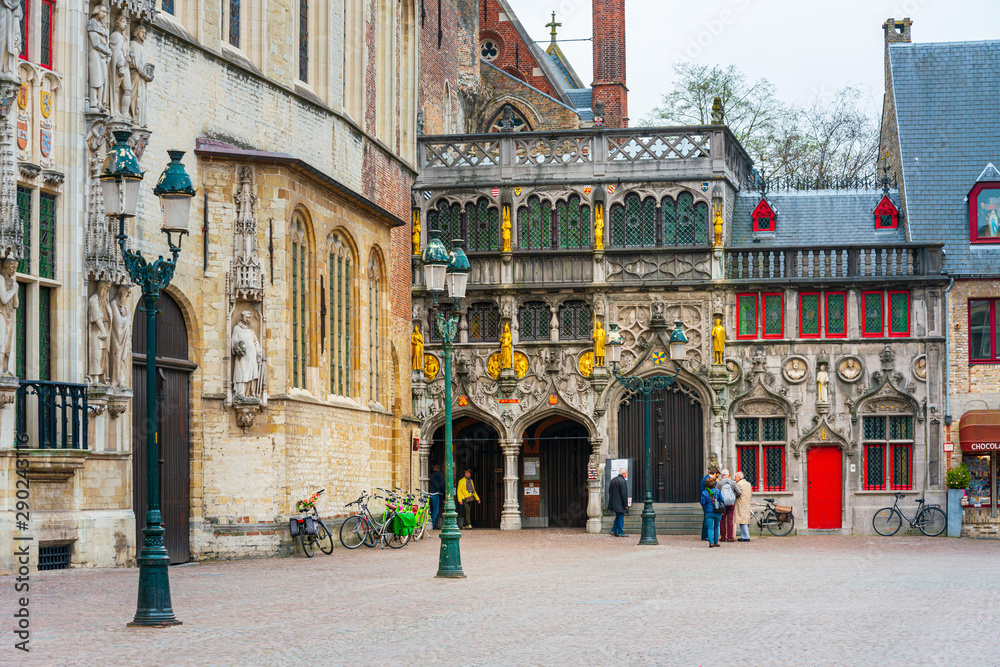 Obraz na plátně BRUGES, BELGIUM - April 13, 2018: Basilica of the Holy Blood in Bruges, Belgium