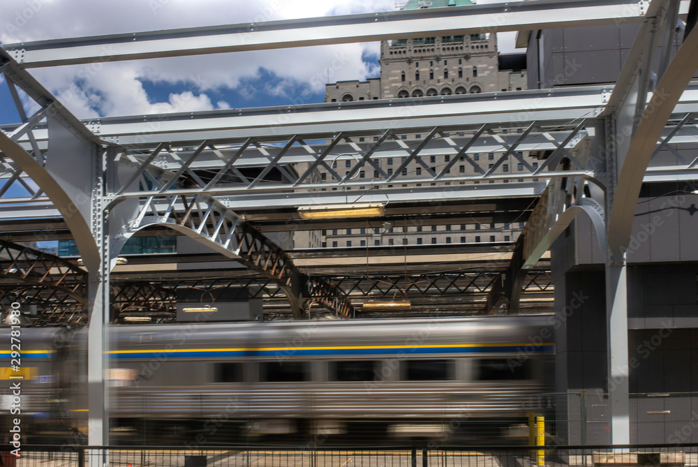 Obraz na plátně Train speeding through Union Station Toronto motion blur nobody