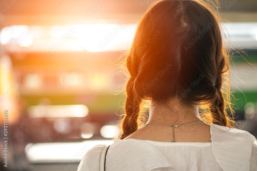 Obraz na plátně Asian woman with long hair, pigtail on both sides