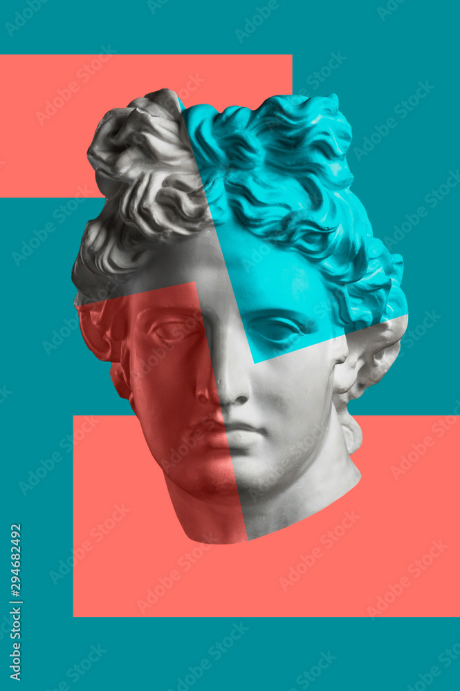 Obraz na plátně Contemporary art concept collage with antique statue head in a surreal style