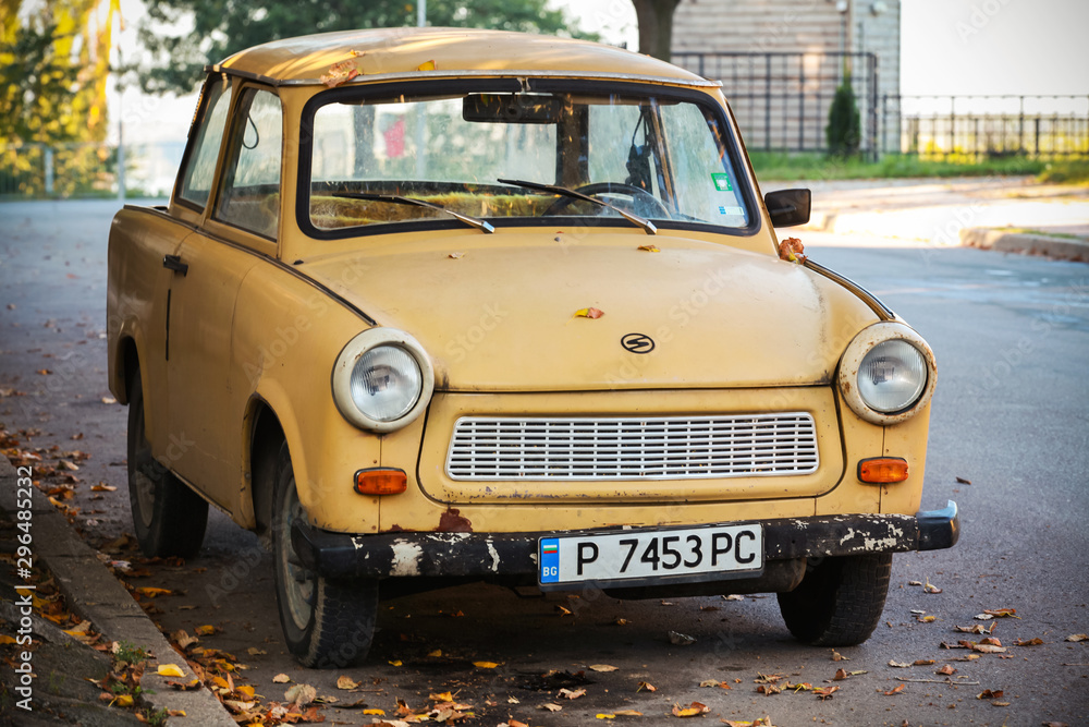 Obraz na plátně Old yellow Trabant 601s car on the street