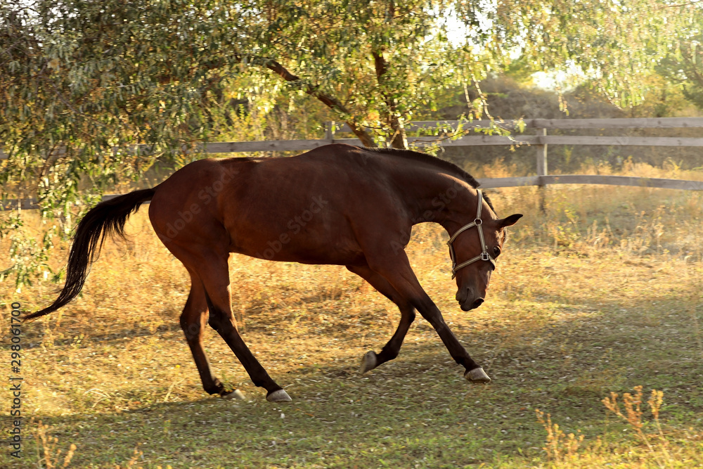 Obraz na plátně Chestnut horse outdoors on sunny day. Beautiful pet