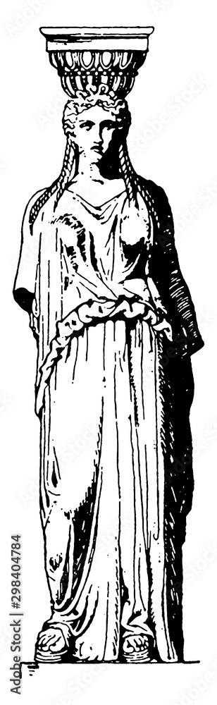 Obraz na plátně Greek Caryatid, a female figure, vintage engraving.