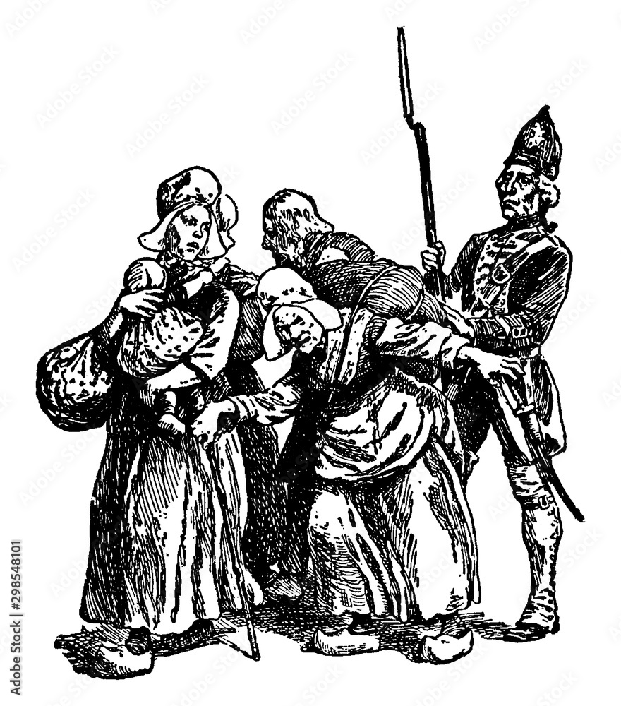 Obraz na plátně Acadian Peasants,vintage illustration.