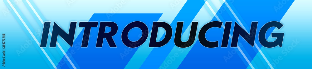 Obraz na plátně Introducing - clear black text typography isolated on blue background