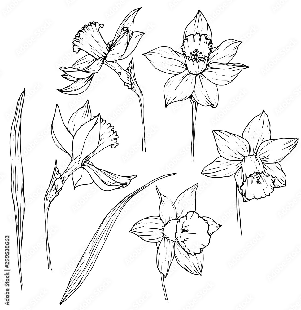 Obraz na plátně Hand drawn narcissus botanical doodle