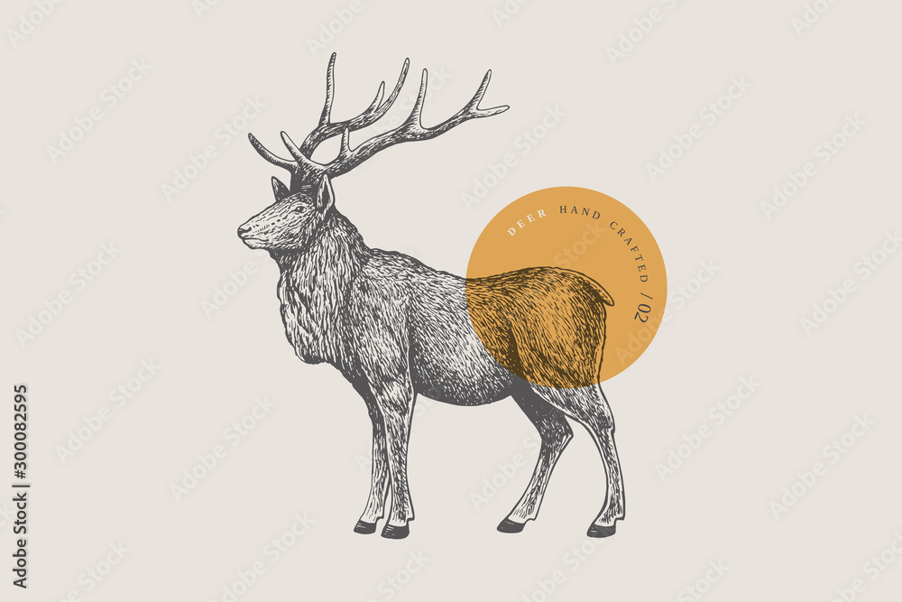 Obraz na plátně Hand drawing of a forest deer on a light background