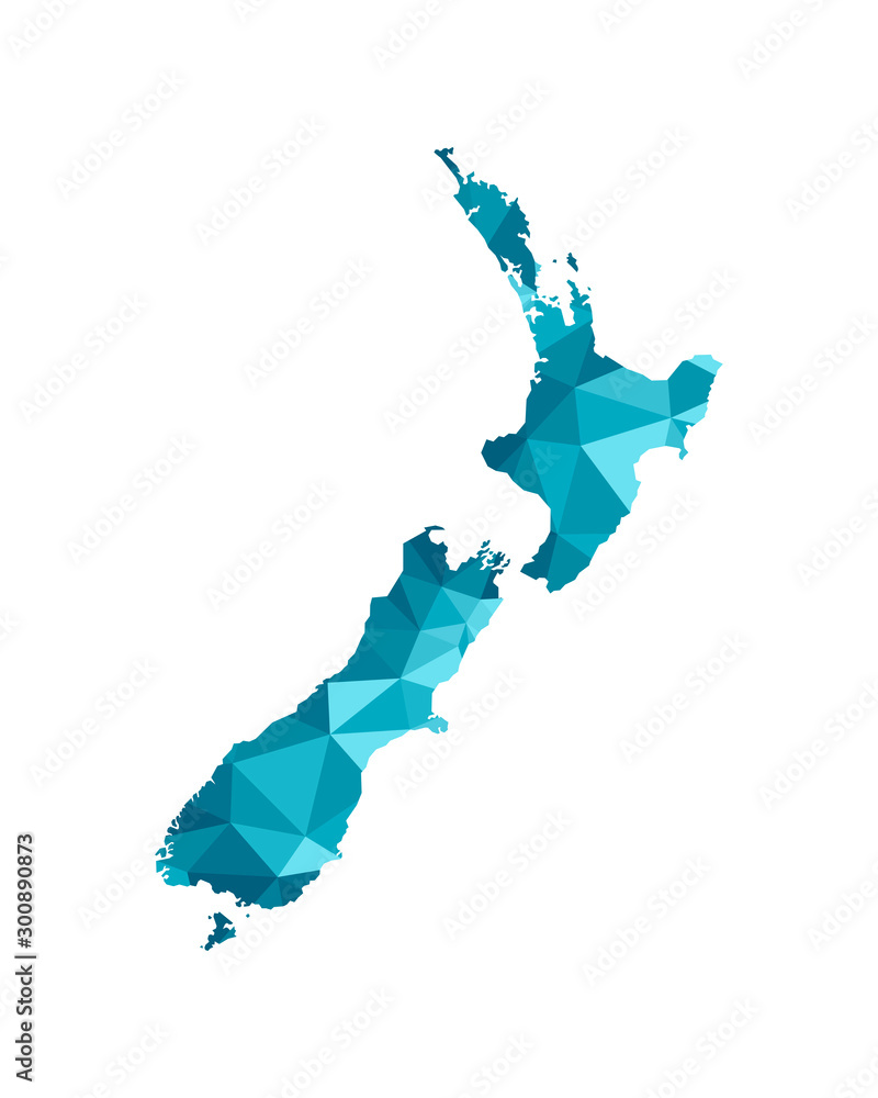 Obraz na plátně Vector isolated illustration icon with simplified blue silhouette of New Zealand map