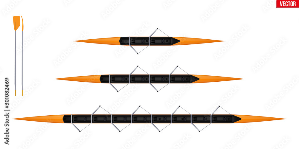Obraz na plátně Set of racing shell and oars for rowing sport