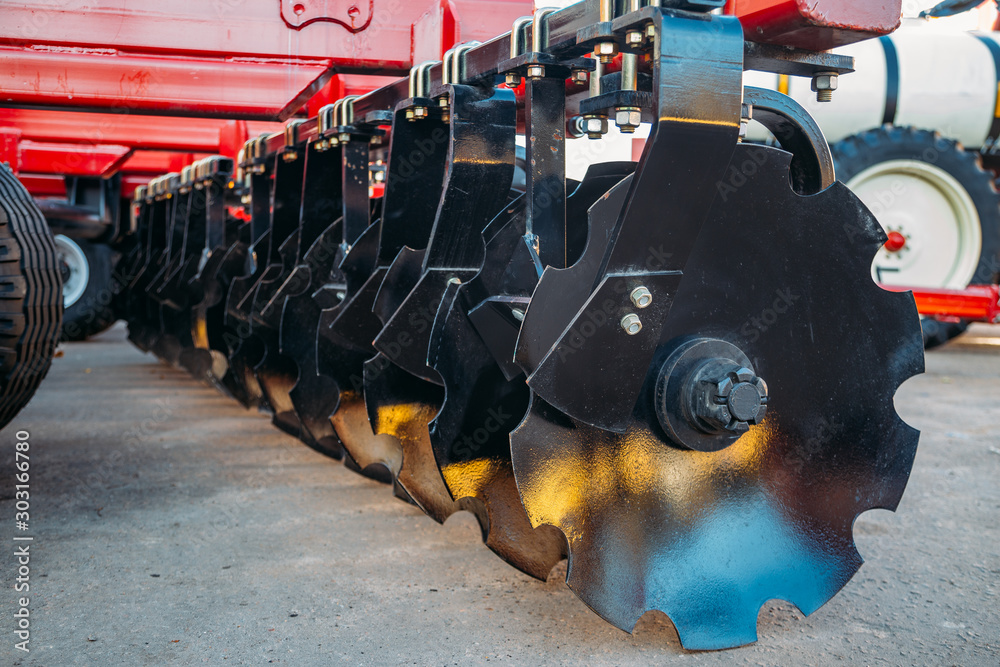 Obraz na plátně Working parts of new modern agricultural disc harrow for tillage