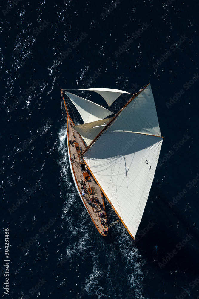 Obraz na plátně French Riviera -Tuiga sail race straight above aerial view in St -Tropez