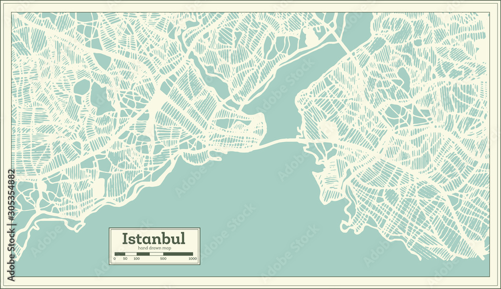 Obraz na plátně Istanbul Turkey City Map in Retro Style. Outline Map.