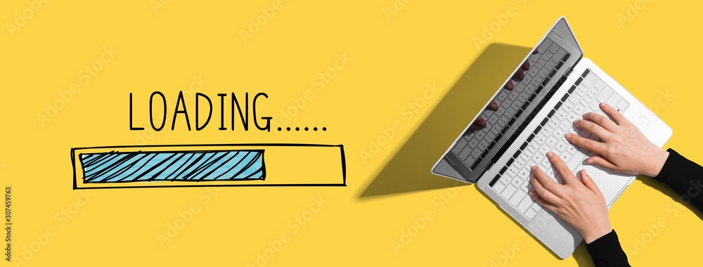 Obraz na plátně Loading concept with person using a laptop computer