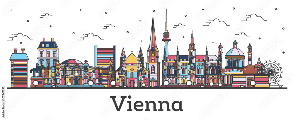 Obraz na plátně Outline Vienna Austria City Skyline with Color Buildings Isolated on White