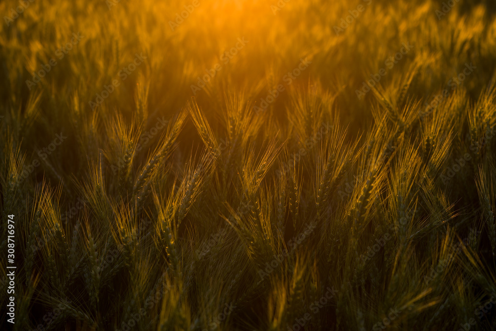 Obraz na plátně Warm summer evening with a sunset on a harvest field