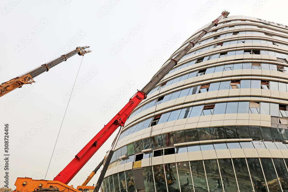 Obraz na plátně crane arm and glass curtain wall