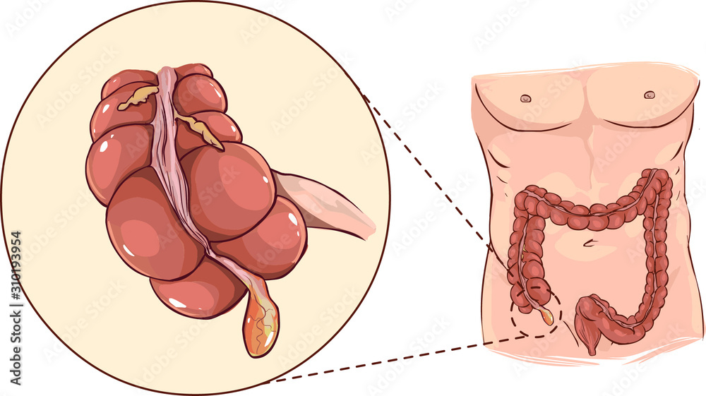 Obraz na plátně Vector illustration of a with detail of an appendicitis