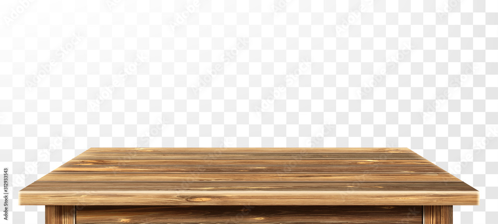 Obraz na plátně Wooden table top with aged surface, realistic vector illustration