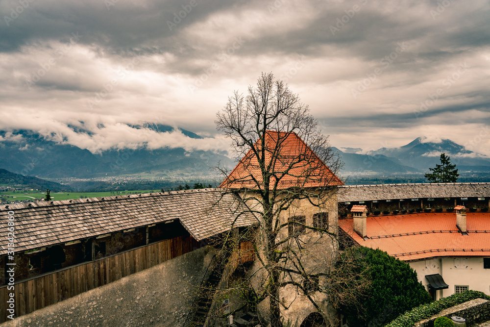 Obraz na plátně Castle on a Mountain Hill Bled Lake Slovenia Europe Alps