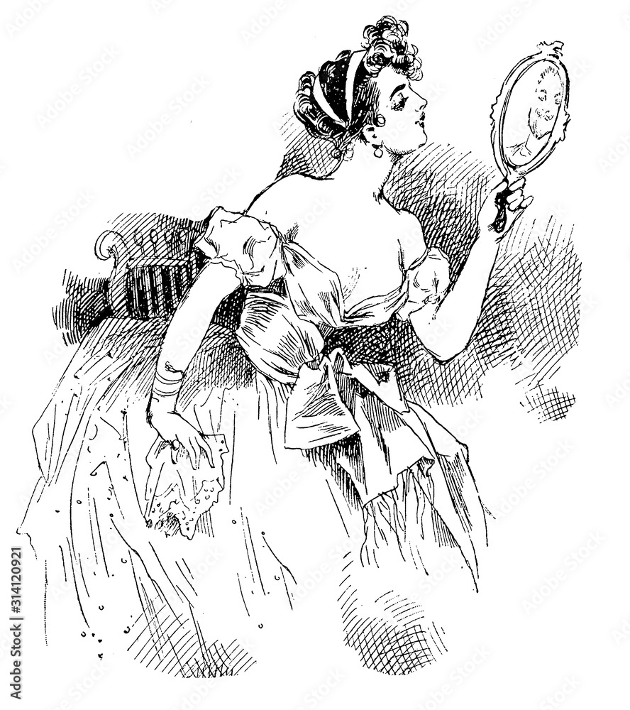 Obraz na plátně French humor and caricature: young attractive woman fancy dressed for a party lo