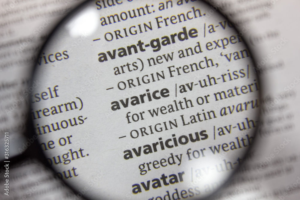 Obraz na plátně The word of phrase - avarice - in a dictionary.