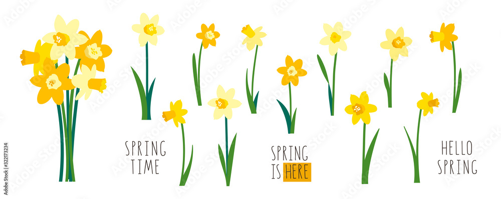 Obraz na plátně Vector set of yellow daffodils isolated on white background