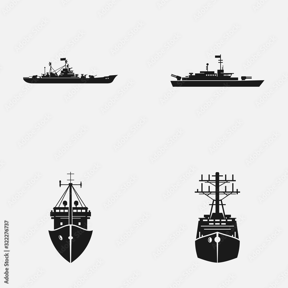 Obraz na plátně Set of naval fleet elements flat vector icons.