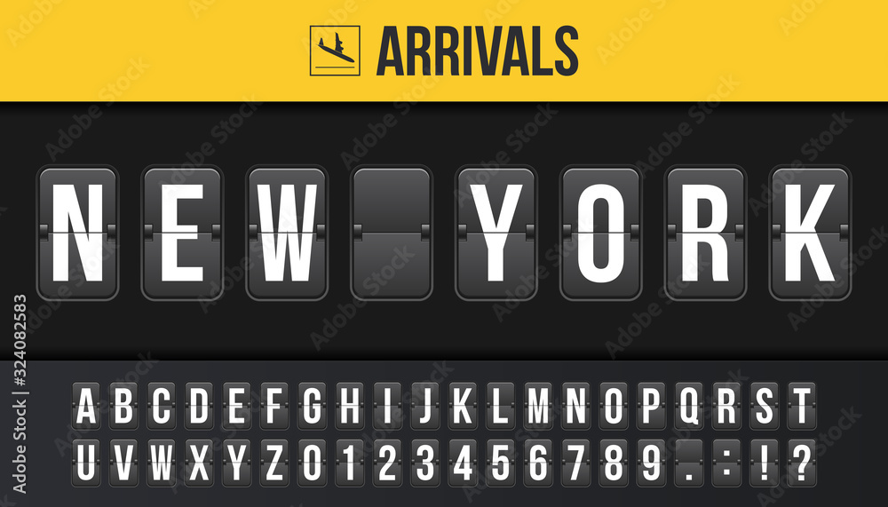 Obraz na plátně Creative vector illustration of New York airport departure destination, arrivals board, flip scoreboard background