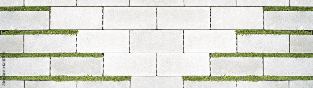 Obraz na plátně concrete pavement on the outside with narrow grass strips, garden design backgro