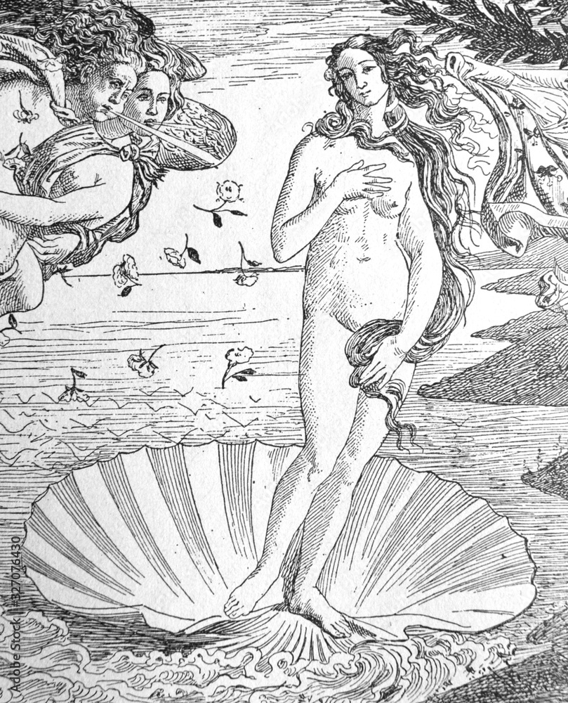 Obraz na plátně Painting The Birth of Venus (detail) by Sandro Boticcelli in the old book La Peinture Italienne, by G